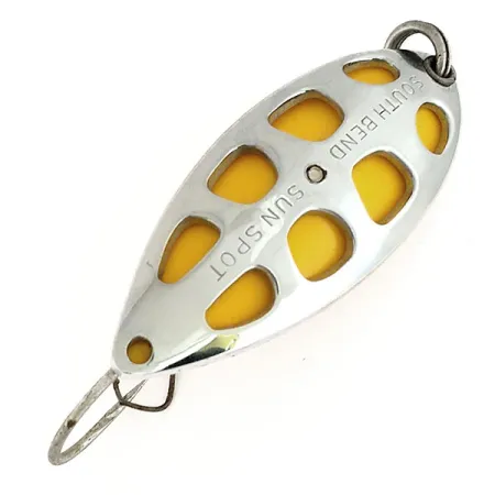 Museiarkiv: South Bend Sun Spot Skeddrag, Nickel / Gul, 14g, perforerad, #9652