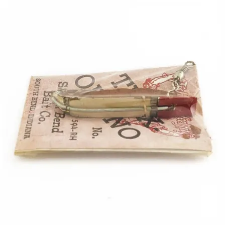 Detta flugspöbete mäter 4,5 cm (1 3/4") och har en silver- och röd finish. Det är i oanvänt skick på sitt originalkort. South Bend tillverkade denna modell 594-RH med en vikt på 2 g (1/16 oz), speciellt konstruerad för en sjunkande gång som efterliknar små insekter eller småfisk. Att nå öring på djupare vatten vid säsongsbetonade temperaturväxlingar är möjligt eftersom kroppen reagerar på minsta spörörelse. Designen inkluderar en liten metallbricka, och originalkortet ger instruktioner om hur man lägger till fläsksvål på kroken för ökad synlighet. Information på förpackningens baksida indikerar att denna serie även inkluderade modellerna 593 och 594D för olika typer av lätt fiske. Produktkod 24506.