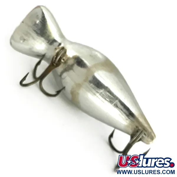 Denna Storm Short Wart i Mirror Silver väger 1/4 oz (8 g) och representerar hantverket från Pre-Rapala-eran i USA. Samlare söker ofta efter denna specifika produktkod 7279, då den markerar tiden före varumärkets produktionsflytt. Den 2 1/4" (5,5 cm) långa flytande kroppen är i 5/5-skick och har kvar en briljant metallisk lyster längs sidorna. En djupsvart rygg ger en skarp kontrast som leder fram till de ikoniska stora gula ögonen som definierar Wart-familjen. Inuti är rasselkammaren fullt fungerande och levererar den ljudförmåga som är specifik för denna modell. Hårdvaran består av två trekrokar fästa via robusta fjäderringar, tillsammans med en klar, integrerad haksked. Detta exemplar framhäver den hållbara byggkvalitet som förväntas av klassiska amerikanska fiskeredskap.