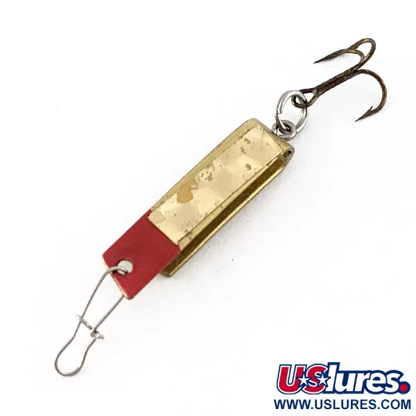 Med en nätt vikt på 2,3 g (3/32 oz) är detta guldpläterade exemplar från Luhr Jensen försett med den karakteristiska U-formade böjen som gjorde Super-Duper till en klassiker i amerikanska betesaskar. Detta bete på 3 cm (1 1/4"), med produktkod 23303, använder en okonventionell design för att fånga vattenmotståndet, vilket ger en specifik gång som historiskt sett lockat öring, abborre och gädda. Den mässingsfärgade guldpläteringen är fortfarande blank och skicket bedöms till 5/5, med endast en aning mattare lyster som ger karaktär åt betet. En intensiv röd detalj vid fästöglan fungerar som en visuell huggpunkt, medan hårdvaran består av en klassisk trekrok monterad med en rejäl fjäderring. Designen är mångsidig och fungerar utmärkt både vid spinnfiske i strömmande vatten eller vid trolling med tunn lina. Originalbeteslåset sitter fortfarande kvar, vilket gör det redo för både fiske och samlarhyllan. Tillverkad i USA, reflekterar den stansade metallkroppen en era av enkel och effektiv ingenjörskonst inom fiskeredskap.