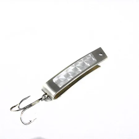 Med en längd på 4,5 cm (1 3/4 tum) är den distinkta U-formade profilen på denna South Bend-klassiker omedelbart igenkännbar för öring- och abborrspecialister. Denna Super-Duper 506, listad under produktkod 0538, har en blank nickelfinish kombinerat med ett texturerat hologram-inlägg på utsidan för att maximera ljusreflektionen. Draget väger 7 g (1/4 oz) och är tillverkat av ett enda stycke vikt metall för att skapa dess unika geometri. Exemplaret är i 4/5 skick, där nickelpläteringen och den holografiska tejpen är rena och sitter bra. Även om originaltrekroken sitter på, kan en samlare eller sportfiskare överväga att byta ut den för att säkerställa en skärpa som matchar dragets fina skick. Tillverkad i USA, vilket visar den enkla men effektiva design som kännetecknade South Bend-produktionen under mitten av seklet.