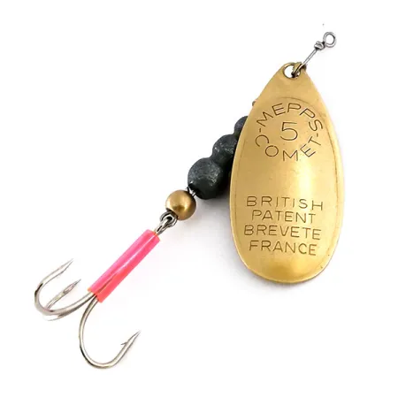 Museiarkiv: Vintage Mepps Comet 5 Spinnare, Mässing, 8cm, Rosa attraktor, #10199