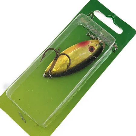 En totalvikt på 14 g (1/2 oz) gör denna specifika jiggingpirk till ett utmärkt val för att nå gös och gädda på djupare vatten. Med ett mått på 5,5 cm (2 1/4") utmärker sig finishen Golden Crystal med sina klargula sidor, mörk kontrast på undersidan och en skarp röd detalj vid ögat. Denna Wahoo Key Largo Swim'n Fin, identifierad med produktkod PRE-FFS72-A, har en inbyggd rasselkammare i sin konstruktion för att ge ljudattraktion vid jiggfiske. Hårdvaran består av trekrokar av premiumkvalitet och ett lekande monterat vid nosen. Då den har skickgradering 6 är betet oanvänt och ligger kvar i sin oöppnade originalförpackning.