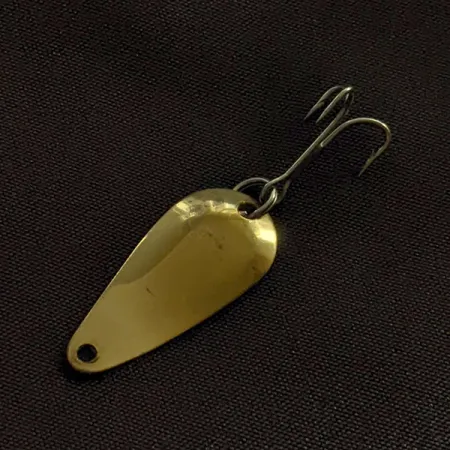 Med en vikt på nätta 1,7 g (1/16 oz) fungerar detta skeddrag i mässingsfinish som ett bevis på dåtidens finessutrustning. Weller Gypsy King Deluxe, listad under produktkod 22968, har en droppformad profil framtagen för fiske med tunna linor och ultralätt kastfiske. Den polerade mässingsytan ger ett naturligt metalliskt blänk som efterliknar små bytesfiskar. En robust trekrok är fäst vid den 3 cm (1 1/4") långa kroppen med en rejäl fjäderring, vilket säkerställer bra krokning av mindre målarter. Draget är tillverkat i USA och byggkvaliteten speglar Weller-företagets traditionella tillverkningsstandard. Detta exemplar har skicket 5/5 och är i oanvänt skick med en klar, reflekterande finish. Betets ovandel har en precisionsborrad fästpunkt för direkt knytning av lina eller för ett litet beteslås.