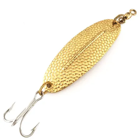 Den hamrade guldfinishen ger denna kanadensiska klassiker på 18 g (2/3 oz) en strukturerad, reflekterande yta som efterliknar naturliga fjäll och fångar ljus från flera vinklar. Med en längd på 8,2 cm (3 1/4") har denna Williams Wabler tillverkarens karaktäristiska upphöjda längsgående rygg – en strukturell egenskap utformad för att bibehålla stabiliteten vid olika invevningshastigheter. Med produktkod 12284 uppvisar skeddraget den högkvalitativa plätering som Williams är känd för, ett adelsmärke för deras mest erkända serie som ofta används vid fiske efter gädda eller gös. Utrustningen på detta exemplar inkluderar en robust trekrok fäst via en fjäderring och ett tunnhvirvel vid nosen för att motverka linvridning. Klassad till 5/5 i skick framstår metallytorna och komponenterna som rena och välbevarade. Denna 12284-modell representerar en betydande del av kanadensisk sportfiskehistoria, specifikt utformad för att erbjuda stabil gång genom sin unika stansade geometri.