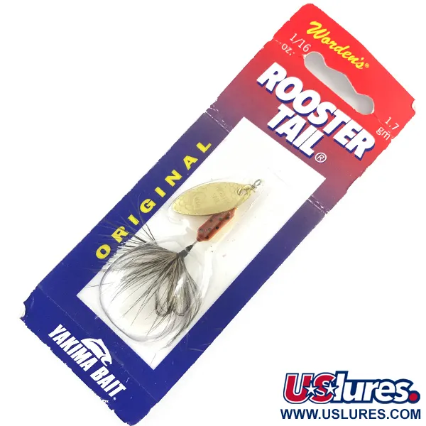 Med en vikt på lätta 1/16 oz (1,77 g) förblir denna klassiska inline-spinnare ett givet val för ultralätt fiske. Ett livfullt guldtonat pilblad (willow leaf) kombineras med en handbunden brun hackelstjärt, karaktäristiskt för färgmönstret 206 BRTR. Detta exemplar bär den ursprungliga Yakima Bait-brandingen, en design med anor från Howard Wordens innovationer i Wisconsin under 1950-talet. Betet mäter 2" (5 cm) i total längd och levereras i sin blå-röda originalförpackning, märkt med produktkod 206 BRTR. Tillverkningslandet anges som Mexiko på baksidan av förpackningen. Skicket på just detta exemplar är oanvänt, och både bete och förpackning är i nyskick. Pilbladet är utformat för att rotera runt den brunmålade kroppen, medan de naturliga hackelfjädrarna skapar en tydlig profil i vattnet.