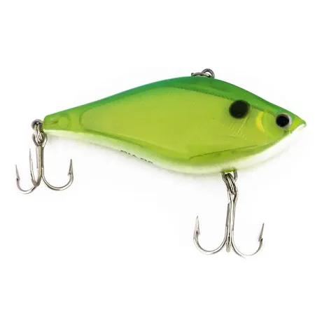 Den genomskinliga kroppen på denna 9889-modell har en livlig grön färgsättning och avslöjar en intern 3D-prismaeffekt som är utformad för att fånga och bryta ljus djupt ner i vattenpelaren. Med en längd på 6 cm (2 1/4") och en vikt på 12 g (2/5 oz) erbjuder detta sjunkande vibrationsbete (lipless crankbait) ett mångsidigt tillvägagångssätt för både spinnfiske och trolling på varierande djup. Konstruktionen inkluderar en ljudlig intern rasselkammare som matchas med hårdvara av hög kvalitet, typisk för Yo-Zuri/Duels japanska produktion. Från det överdimensionerade mörka ögat till den intrikata interna fjälltexturen är varje visuellt element bevarat i sitt 5/5-skick. Det är utformat för ett brett spektrum av rovfiskar och är ett standardval för abborre, gös, gädda och till och med lax. Linfästet är säkert placerat på ryggryggen, vilket säkerställer att betet bibehåller sin avsedda gång vid jämn hemfiskning.