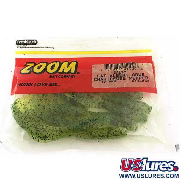 Museiarkiv: Zoom Fat Albert Grub Jigg, Chartreuse Pepper, 8.25cm, Räfflad Kropp, #6678